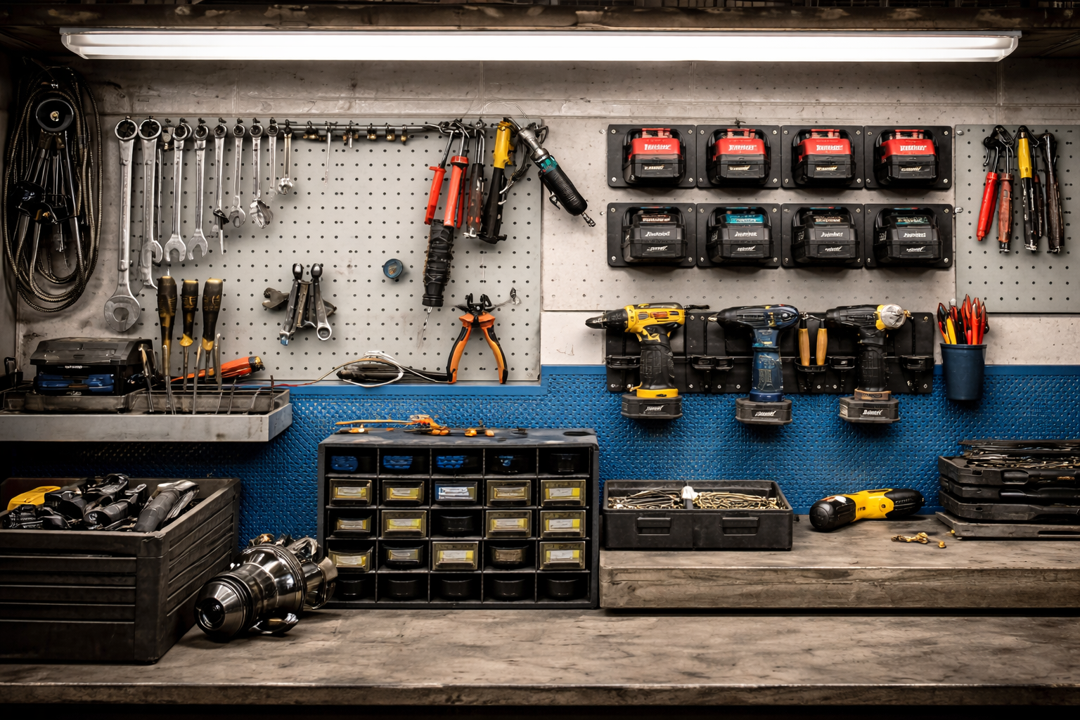 Når værktøj, batterier og udstyr har faste pladser, bliver arbejdet både hurtigere og mere overskueligt.