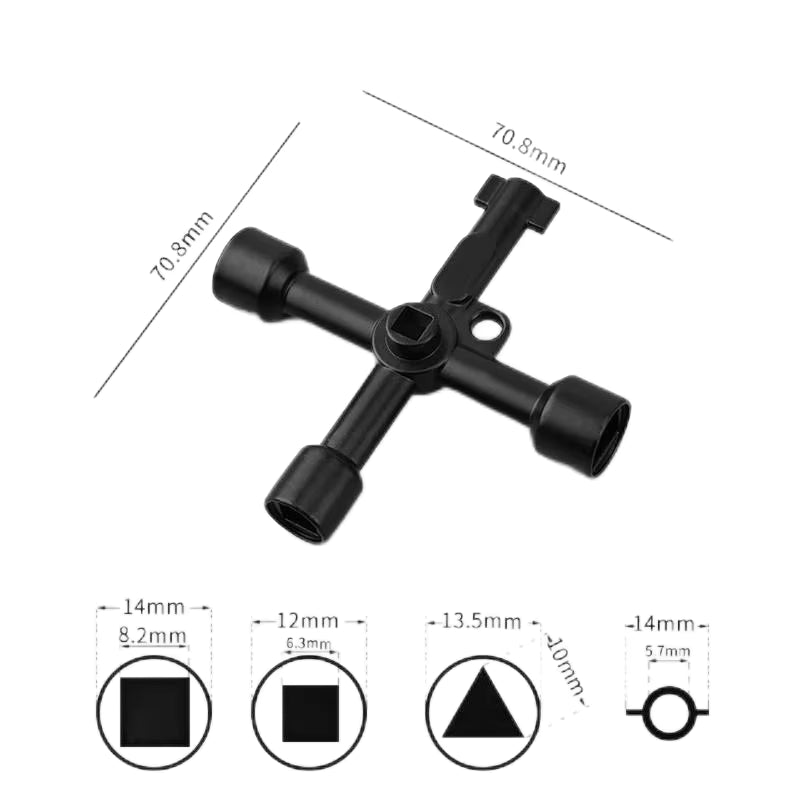 Denne Multifunktionelle Universalnøgle er et praktisk og alsidigt værktøj til professionelle teknikere, elektrikere, håndværkere og gør-det-selv-entusiaster. Den er designet til at give dig hurtig og enkel adgang til forskellige typer låse og kabinetter – ideel til både service- og vedligeholdelsesopgaver.